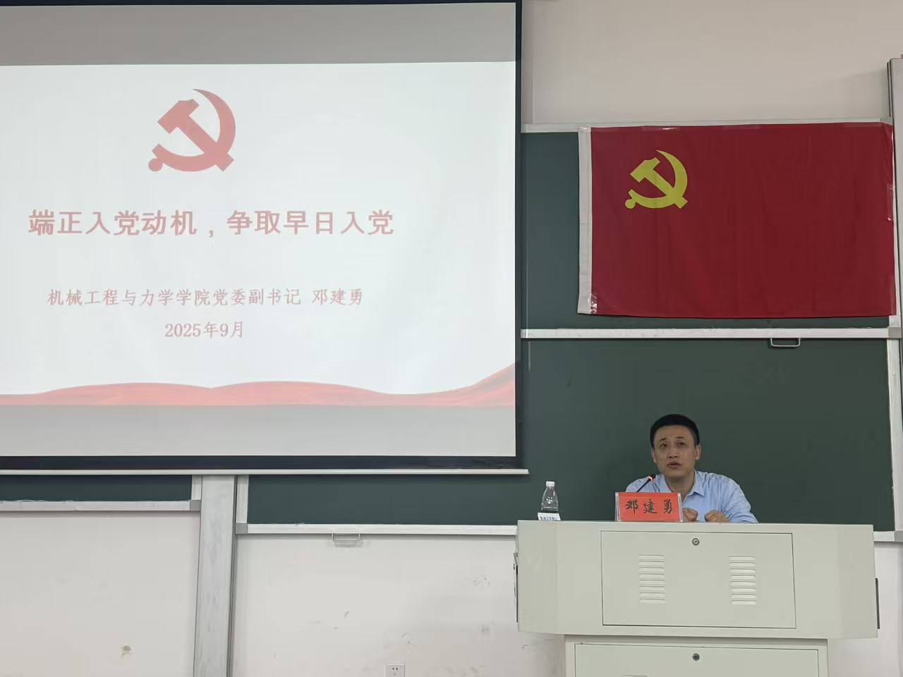 开班典礼上,免费av影片 党委副书记邓建勇发表讲话并授课,他指出入党积极分子要主动接受党组织的考验,加强党的理论知识学习,做到以学笃行,成为一名信念坚定、知行合一的新时代大学生。同时,他以“端正入党动机,争取早日入党”为题进行授课,引导学员将个人理想融入党的宗旨与民族复兴伟大事业。